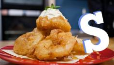 These coconut and pineapple fritters are super crispy due to the light tempura batter! http://bit.ly/X2FGiC We've marinated the pineapple in rum and coconut for an extra tropical twist.