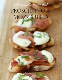 Grilled Prosciutto, Fresh Mozzarella Garlic Toasts with Fresh Basil