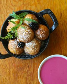 LEMON VERBENA & RICOTTA DOUGHNUTS WITH BLACKBERRY SAUCE