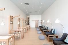 A toxic free, minimalist nail salon whose clean space reflects the company's natural philosophy with bamboo floors, a limited palette, and pebble tiles.