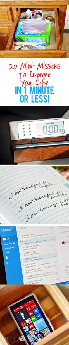 20 Mini-Missions to Improve Your Life in 1 Minute or Less #howdoesshe #familytime howdoesshe.com