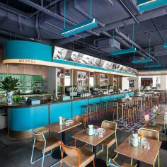 Festival lighting and fly-posters were created to aid the street fiesta atmosphere, with a long central cocktail bar the focal point. Super Loco also sports a taqueria-style takeaway window facing out onto the riverside walkway if you can’t stop to party...