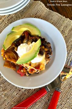 This Bush's Black Bean Crock Pot Lasagna, is easy to prepare and start cooking hours ahead of a dinner party, a great dish to serve kids. #vegetarian