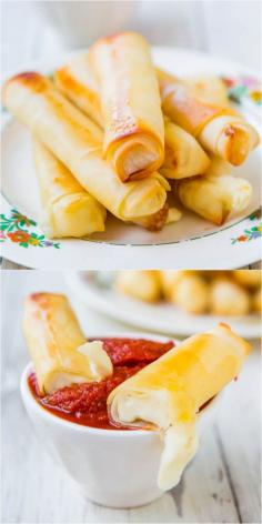 Skinny Two-Ingredient 110-Calorie Mozzarella Cheese Sticks - Comfort food goes skinny so you can still indulge without the bulge! And so fast & easy to make!