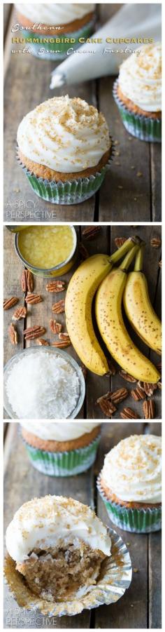 The Ultimate Hummingbird Cake! (Cupcakes with Sour Cream Frosting!) #cupcakes #spring #southern