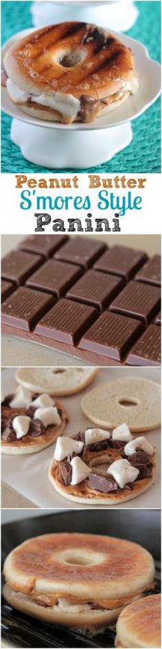 Peanut Butter S'mores Style Panini! Sweet grilled sandwich using Bagel Thins stuffed with peanut butter, chocolate and marshmallows! #recipe #dessert #thomasbreads
