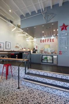 Arcsine Architecture have transformed a dull and dated retail space with green carpet, beige walls, and drop ceilings, into a contemporary coffee shop named Modern Coffee, located in Oakland, California.
