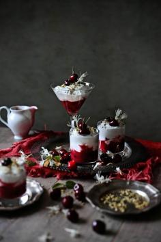 Pratos e Travessas: Parfait the cerejas e madressilva com creme de ricotta e baunilha # Cherries and honeysuckle parfait with ricotta and vanilla cream | Food, photography and stories