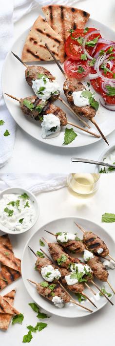 These simply spiced turkey skewers are a great alternative to burgers and so good dipped in a tangy yogurt sauce.