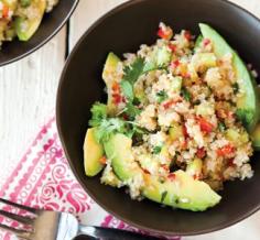 Quinoa, red pepper, cucumber, avocado salad with lime ... Talk about some yummy #health #food!