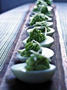 Green Eggs and Ham - March 2, 2013 - Dr. Seuss's birthday Guacamole Deviled Eggs and Spicy Ham Rolls (http://the-good-plate.com/?p=339#hamrolls)