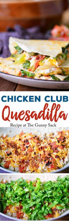This Chicken Club Quesadilla recipe is a fast, easy meal or appetizer idea that is full of flavor. These quesadillas are stuffed with chicken, bacon, cheese and salsa!