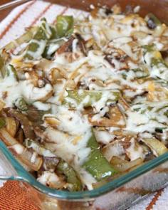 Lightly Smothered Chicken - Low carb, use full fat mozzarella cheese-12 oz boneless skinless chicken breast - grilled (I used tenders) 1 teaspoon olive oil 1 green bell pepper - sliced 8oz mushrooms - sliced 1 large onion - cut in half and sliced 1 clove garlic - minced 1 teaspoon oregano salt and pepper - to taste 1 tablespoon dijon mustard 1/2 cup reduced fat mozzarella cheese