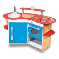 Curved wood kitchen in red blue white and natural Removable sink 3-burner cook top and oven Cutting board and a real working timer Refrigerator with storage shelves for extra space Recommended for ages 3-6 years Measures 26L x 36W x 16H inches. With everything your budding chef needs to prepare a great meal the Melissa and Doug Cook's Corner Wooden Kitchen is both compact and efficient. This play kitchen includes a removable sink a three-burner cook top an oven with clicking knobs a refrigerator with storage shelves a cutting board and even a real working time. Crafted from wood and beautifully painted this kitchen is designed to spur on the imagination and encourage your kids in playtime activities that mimic real life. Recommended ages 3-6 years. Dimensions: 26L x 36W x 16H inches. About Melissa & Doug ToysSince 1988 Melissa & Doug have grown into a beloved children's product company. They're known for their quality educational toys and items and have grown in double digits annually. The Melissa & Doug company has been named Vendor of the Year by such great retailers as FAO Schwarz Toys R Us and Learning Express and their toys have been honored as Toys of the Year by Child Magazine FamilyFun Magazine and Parenting Magazine. Melissa & Doug - caring quality children's products. Your aspiring chef will love this cute compact play kitchen from Melissa and Doug. An awesome creative play idea this set teaches your child how a real kitchen is run making it an educational toy as well. With a refrigerator and oven underneath and a sink three burners and a preparation space on top this kitchen is just like the real thing. It also has storage shelves and a timer that your child can really use. Plus the height is perfect for your little ones.