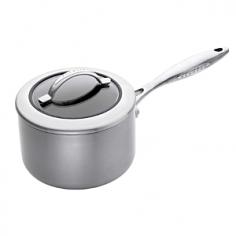 Saucepans - Scanpan introduces the world's first induction-safe, certified PFOA-free "green" nonstick cookware of heavy-gauge 5-ply construction for professional and home kitchens. Ultra-smooth ceramic-titanium nonstick interior is superior in the quick-release of foods, and so extremely durable, metal utensils will not damage the surface. Versatile Scanpan CTX saucepan creates flawless sauces and gravies, allowing quick evaporation and reduction of liquids. Patented titanium nonstick surface developed by Scanpan not only offers foolproof release, the silky-smooth interior prevents scorching. Made with 5-layer pressure-cast aluminum and stainless-steel for excellent heat distribution, this cookware provides outstanding heat retention without hot spots. The integration of tempered glass with a wider stainless-steel rim on the lid lets you monitor the cooking process while providing greater retention of heat for precise cooking. Side vents conveniently release steam. Inner rubberized seal - Specifications Made in Denmark Limited lifetime manufacturer warranty 2-qt. saucepan with lid 6 1/4" Dia. (14"L with handle) x 4"H (6"H w/lid) 2-lb, 14-oz. Model: 65231600 2 3/4-qt. saucepan with lid 7 1/4" Dia. (14 3/4"L with handle) x 4 1/4"H (6 3/4"H w/lid) 3-lb, 6-oz. Model: 65231800 4-qt. saucepan with helper handle and lid 8" Dia. (19"L with handles) x 4 3/4"H (7"H w/lid) 4-lb, 8-oz. Model: 65232000 Care and Use Dishwasher-safe, but hand washing is recommended Safe for gas, electric, ceramic and induction stove tops Oven-safe to 500 degrees F Nylon, silicone or wooden utensils recommended; however, metal utensils will not damage the nonstick coating Use soft nylon scrub pad for extensive cleaning Do not use aerosol spray oils