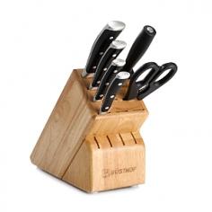 The premier Wusthof collection, Wusthof Classic Ikon knives feature a unique forged double-bolster design and ergonomic handles. Precision-forged, high-carbon stainless-steel blades resist rust and stains, and are finished by hand for the ultimate razor-sharp edge. Guaranteed for a lifetime of performance, our exclusive block sets include a walnut block. Seven-piece set includes: 3?" paring, 6" utility, 8" chef s, 8" bread, kitchen shears, honing steel and 13-slot block. Made in Germany.