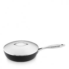 Saute Pans & Sauteuses - The patented ceramic-titanium nonstick surface allows for high-heat cooking including searing, browning and deglazing, features not normally associated with nonstick cookware. Plus, it offers fool-proof food release and easy cleanup. Constructed with an extra-thick pressure-cast aluminum base that transmits heat rapidly and evenly with no hot spots, this cookware can be used for any type of cooking from boiling water to baking a vegetable casserole. With its contemporary design, the pieces are ideal for oven-to-table serving. PFOA free. Made in Denmark. Full lifetime warranty. Dishwasher-safe. Product Features Heavy-duty pressure cast 100% recycled aluminum base for perfect heat distribution 18/10 stainless-steel lids and riveted cast stainless-steel handles No pre-oiling or seasoning needed Scientifically researched optimum pan base thickness to heat up quickly and retain heat better than any other pan Browns, sears and deglazes Guaranteed not to have hot spots Perfect food rele - Specifications Made in Denmark Materials: pressure cast 100% recycled aluminum 10 1/4" Saute Pan 2 3/4-quart capacity Diameter: 10 1/4" Height: 4" with lid Length: 18 1/2" including handle Model: 60102600 12 1/2" Saute Pan 3 1/2-quart Diameter: 12 1/2" Height: 4" with lid Length: 24 1/2" including handles Model: 60103200 Care and Use Before using for the first time, hand wash in warm soapy water. After each use, wash with warm soapy water while it is still warm. The product should be completely clean before storing. Do not use aerosol sprays. Do not over heat. Do not use to store food. Burn marks due to overheating or charring of fatty substances can be removed by filling 3/4 full with water, adding a dessert spoon of dishwashing liquid, and simmering for 15 minutes. Then rinse and scrub as usual. Some signs of normal wear and tear will not affect the non stick finish. Full lifetime warranty.