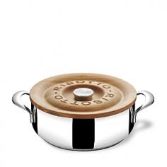 With its low profile for easy stirring, the Lagostina Risotto Pan helps you fully mix foods without overcooking or clumping so your creamy risottos and hearty gumbos turn out deliciously perfect. The fast-heating, 4-quart casserole features premium 5-ply construction with a thick, heat-radiating aluminum core extending up the cookware sides for widespread heat distribution. Brushed stainless steel interior offers long-lasting durability and the polished magnetic stainless steel exterior is fully induction ready. The base adds two layers of stainless steel for advanced heat conduction for any risotto recipe. A beautiful cherry wood lid keeps foods warm for tableside serving and makes an attractive trivet. Wood lid's stainless steel base firmly seals in moisture and flavors. Stay-cool contemporary-styled handles offer secure, safe lifting. Flared easy-pour. Designed for all cooktops, the cooking pot is safe for oven, broiler and dishwasher. Founded in 1901 in Omegna, Italy, Lagostina is Italy's largest and most prestigious premium cookware brand. Lagostina's core values of impeccable Italian craftsmanship, high-quality materials, technological innovation, and elegant design continue to influence each cookware piece. Lagostina cookware represents quintessential Italian culture - a celebration of food, life, family and friends. Product Features Premium 5-ply construction delivers consistent, even heating Thick, heat-radiating aluminum core extends up cookware sides for widespread heat distribution Base adds two layers of stainless steel for advanced heat conduction Brushed stainless steel interior for long-lasting durability Elegant polished magnetic stainless steel exterior is fully induction ready Cherry wood lid keeps foods warm for tableside serving and makes an beautiful trivet Wood lid's stainless steel base firmly seals in moisture and flavors Stay-cool contemporary-styled side handles for easy, safe