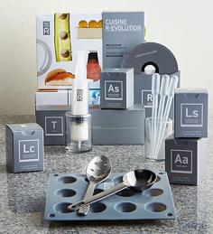 At home chefs can bring their culinary creativity to the next level and impress their guests with spectacular dishes such as mint caviar beads that burst in the mouth, chocolate spaghetti, lemon foam or tzatziki spheres! This do-it-yourself molecular gastronomy kit includes all that is needed to experiment at home with the molecular techniques seen on Top Chef and in high-end restaurants, but without the celebrity chef price tag! This all-encompassing kit includes four pre-measured food additives, five specialized molecular tools as well as a 50-recipe DVD that makes molecular gastronomy easy and accessible to all foodies. Go on… play with your food! Sound intriguing? Click on the video and you will be amazed! Natural texturing agents can now be used to deconstruct any dish thanks to 3 spectacular techniques:>/li>SPHERIFICATION: Encapsulate flavors into bubbles that burst in your mouthEMULSIFICATION: Create colorful foams that intensify aromasGELIFICATION: Sculpt flavors into tasty pearls, raviolis or spaghettis This complete kit includes:5 sachets each of Agar-agar, Calcium Lactate, Sodium Alginate, and Soy Lecithin 3 pipettes1 slotted spoon1 measuring spoon1 food grade syringe2 silicone tubes1 silicone mold1 50-recipe DVDMeasures 9.25"L x 3"W x 6.5"H
