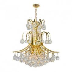 This stunning 9-light Crystal Chandelier only uses the best quality material and workmanship ensuring a beautiful heirloom quality piece. Featuring a radiant gold finish and finely cut premium grade crystals with a lead content of 30%, this elegant chandelier will give any room sparkle and glamour. Worldwide Lighting Corporation is a privately owned manufacturer of high quality crystal chandeliers, pendants, surface mounts, sconces and custom decorative lighting products for the residential, hospitality and commercial building markets. Our high quality crystals meet all standards of perfection, possessing lead oxide of 30% that is above industry standards and can be seen in prestigious homes, hotels, restaurants, casinos, and churches across the country. Our mission is to enhance your lighting needs with exceptional quality fixtures at a reasonable price. Finish: Polished Gold Crystal Color: Clear 30% Premium Full Lead Crystal (9) 60W E12 Incandescent Candelabra Bulb(s) Bulb(s) Not Included Total Watts: 540 Voltage: 110V - 120V Number of Tiers: 1 Beautiful Polished Gold finish and dressed with precision cut and polished 30% Full Lead Crystals for maximum brilliance and sparkle From the Empire Collection Accommodates up to nine 60-watt maximum (40-watt recommended) candelabra base incandescent E-12 bulb (not included) Solid Brass Frame in Gold Plated Finish and 30% Full Lead Crystal Includes 48-in adjustable chain for hanging UL and CUL Listed to US and Canadian safety standards For Dry Locations only (Dry Locations include kitchens, living rooms, dining rooms, bedrooms, foyers, hallways and most areas in bathrooms) Hardware included Assembly instructions and template enclosed for convenient setup (Professional installation is recommended) 1 Year Limited Manufacturing Defects Warranty Hardwired UL Listed, cUL Listed, CSA Listed Style: Transitional Part of the Empire Collection Warranty Info: 1 Year, Worldwide Lighting Corporation warranties products to be free from defects for a period of one year following shipment. Warranty is and void if merchandise is not installed according to factory instructions, NEC guidelines, and applicable building cOverall Dimensions: 19"(D) x 19"(W) x 23"(H)Diameter Range: Diameter from 17" to 23"Item Weight: 34 lbs. Please note that this product is designed for use in the United States only (110 volt wiring), and may not work properly outside of the United States*Use of this product will expose you to lead, a chemical known to the State of California to cause birth defects or other reproductive harm. Not intended for food use.
