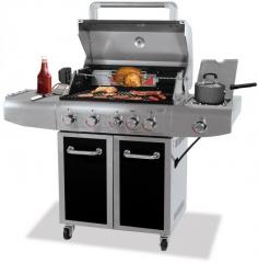 Shop for Outdoors at The Home Depot. This fully loaded 6-burner stainless steel UniFlame Gold gas grill by Blue Rhino will help you demonstrate that you're a true grill aficionado. Featuring 500 sq. in. of cooking space, this grill can cook approximately 28 burgers at one time on its stainless steel cooking grates. A 212 sq. in rack above, keeps food warm and a convenient, while a 12,000 BTU stainless steel side burner is perfect for warming side dishes and sauces. Added features, this deluxe grill is equipped with a 12,000 BTU infrared sear burner and 12,000 BTU rotisserie burner, making it the ultimate backyard appliance. Color: Stainless.