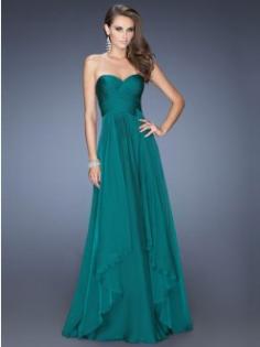 A-Linjeformat Hjärtformad rmlös Volang Chiffong Golvlång Festklänningar