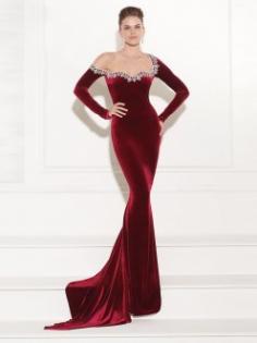 Trumpet/Sjöjungfru Sammet Långa ärmar Square urringning Pärlbrodering Chapel släp Klänningar