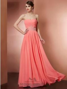 A-linjeformat ärmlös pärlbroderi Chiffong Golvläng balklänningar