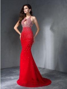 Trumpet Halter Pärlbroderi Chiffong Släp Klänningar