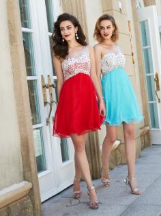 Trapèze/Princessee Mousseline Col asymétrique Perles Sans Manches Courte/Mini Robe de Cocktail