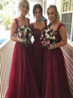Trapèze/Princesse Sans Manches Straps Appliqués Longueur ras du sol Tulle Robes de demoiselle d'honneur