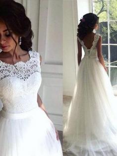 A-linjeformat Spetsar Tyll Bateu Ärmlös Sweep släp Brudklänningar